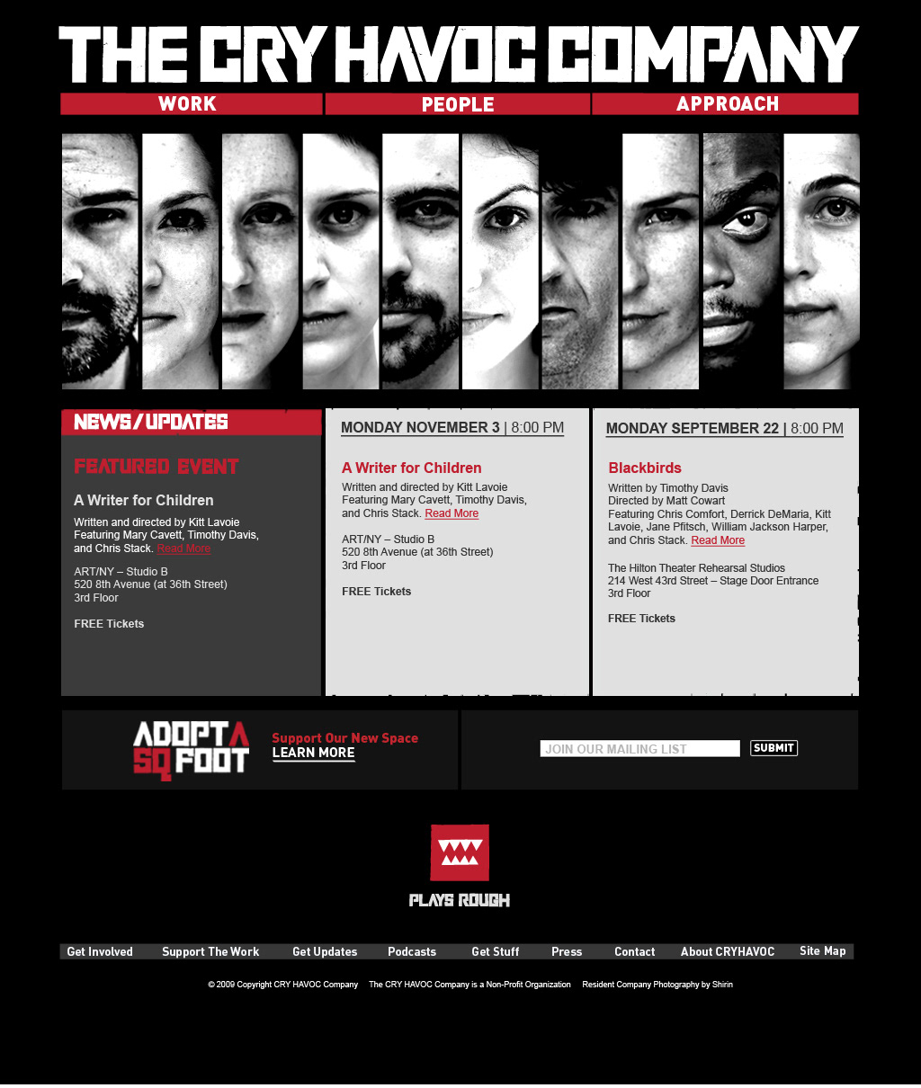 Web design for The Cry Havoc Company, a NYC based theatre group. cryhavoccompany.org
