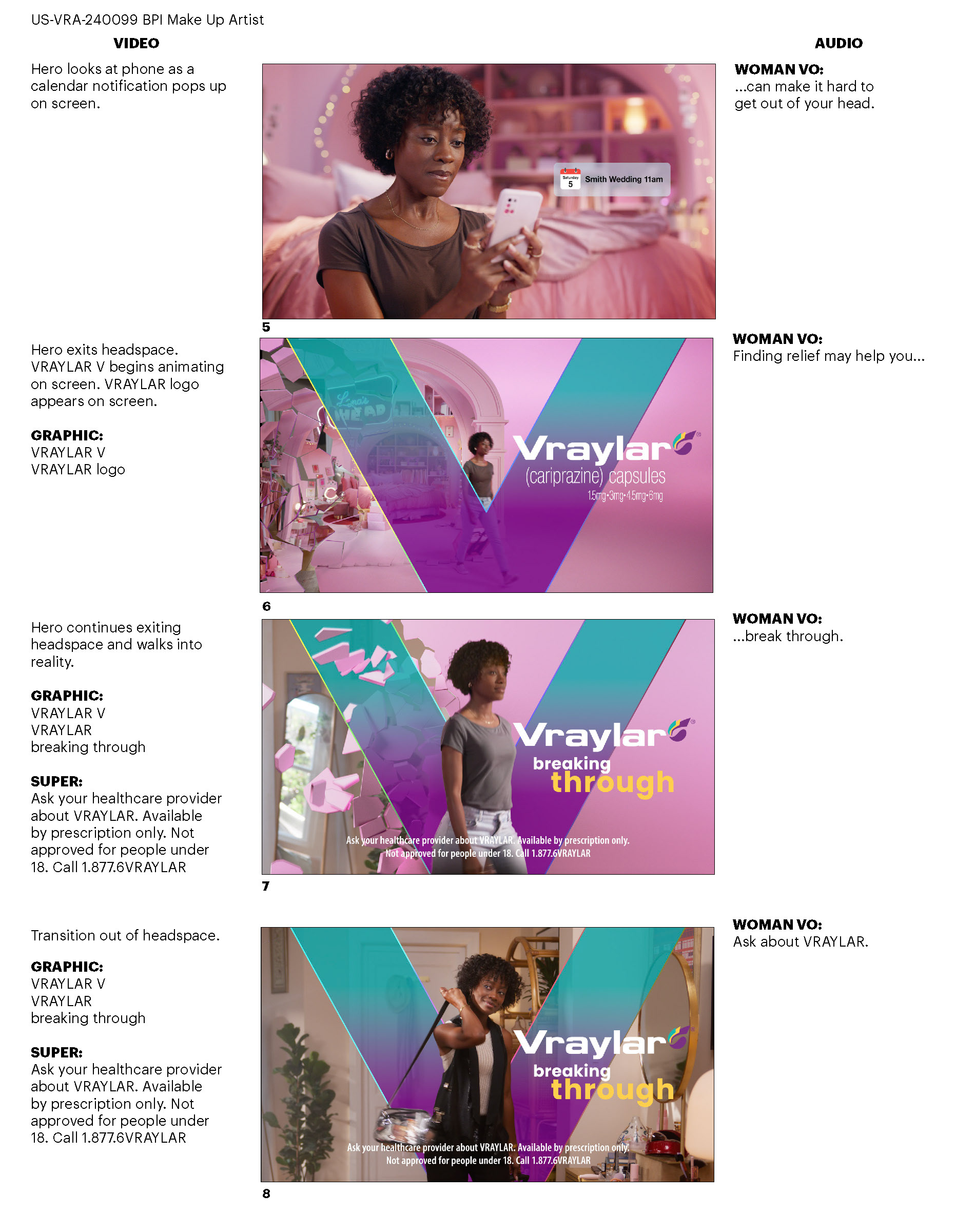 Assisted with storyboard image comping for VRAYLAR Consumer spots